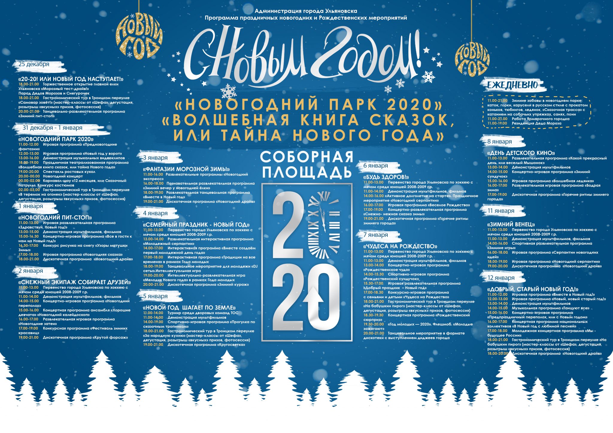 Просим ознакомиться с афишей мероприятияй на Соборной площади и в парках г.Ульяновска в период новогодних и рождественских праздников. Информация в прикрепленном файле.